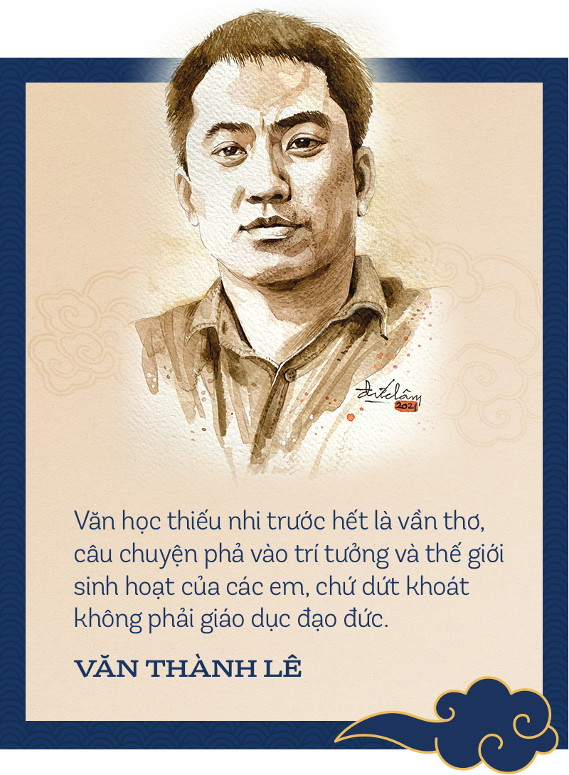 Thay vào đó, các nhân vật được nói cười buồn vui thoải mái như chính các em, không thấp thoáng hình bóng người lớn khóc mướn cười thay hay nói hộ. Văn học thiếu nhi trước hết là vần thơ, câu chuyện phả vào trí tưởng và thế giới sinh hoạt của các em, chứ dứt khoát không phải giáo dục đạo đức, mà nếu có, giáo dục phải đến sau, từ xa, thấp thoáng.