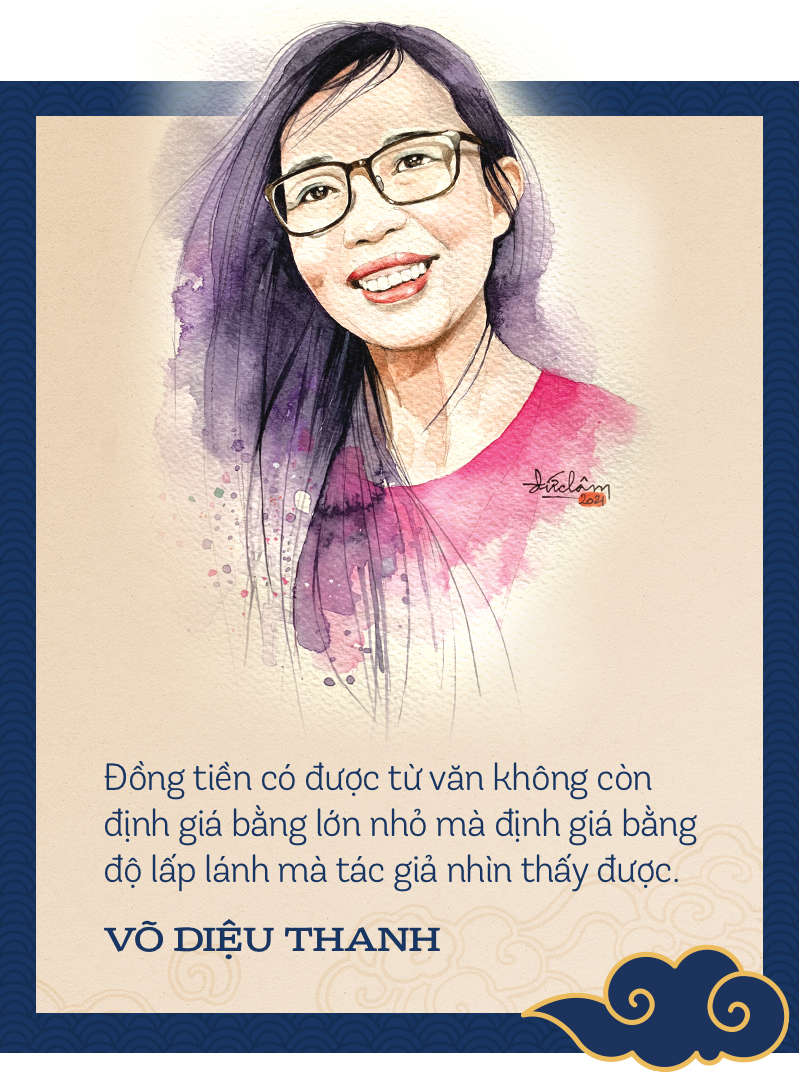 Những đồng tiền văn chương trở thành những bông hoa để tỏa hương tỏa sắc, chưng ở nơi chốn trang trọng linh thiêng, chớ người ta không còn mòn mỏi chờ nó gánh về cho mớ gạo. Đồng tiền có được từ văn không còn định giá bằng lớn nhỏ mà định giá bằng độ lấp lánh mà tác giả nhìn thấy được.
