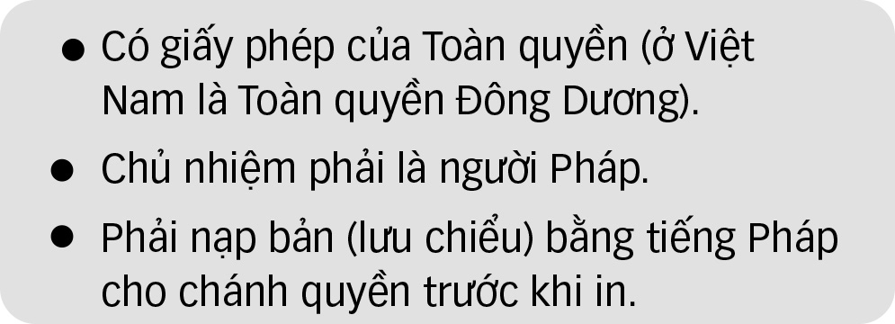 Đến năm 1898, nghị định bổ sung Luật Báo chí (Luật 1898) "dành cho các thuộc địa của Pháp", muốn xuất bản một tờ báo không phải tiếng Pháp, ngoài việc tuân thủ Luật 1881, còn phải: