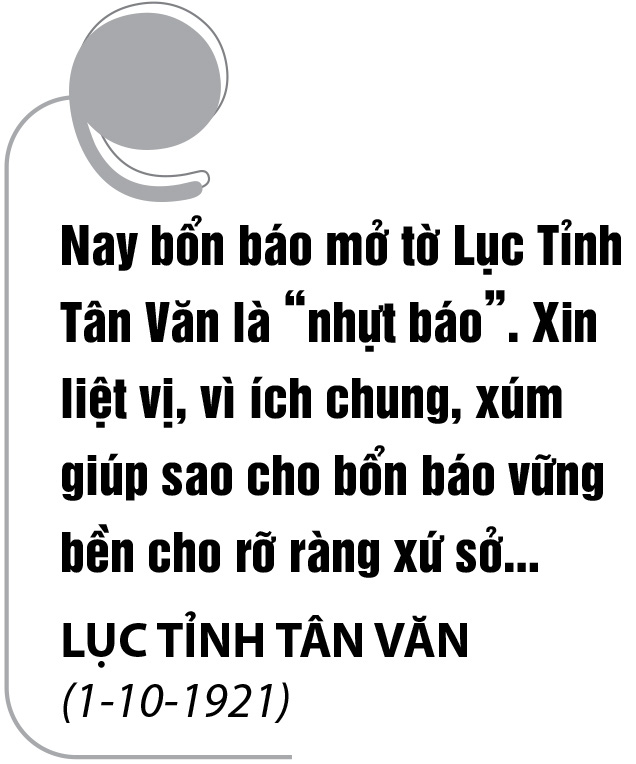 Và tới ngày 1-10-1921, ông Của hợp nhứt hai tờ tuần báo Nam Trung Nhựt Báo và Lục Tỉnh Tân Văn. Tờ Lục Tỉnh Tân Văn xuất bản hằng ngày ra đời với lời rao: