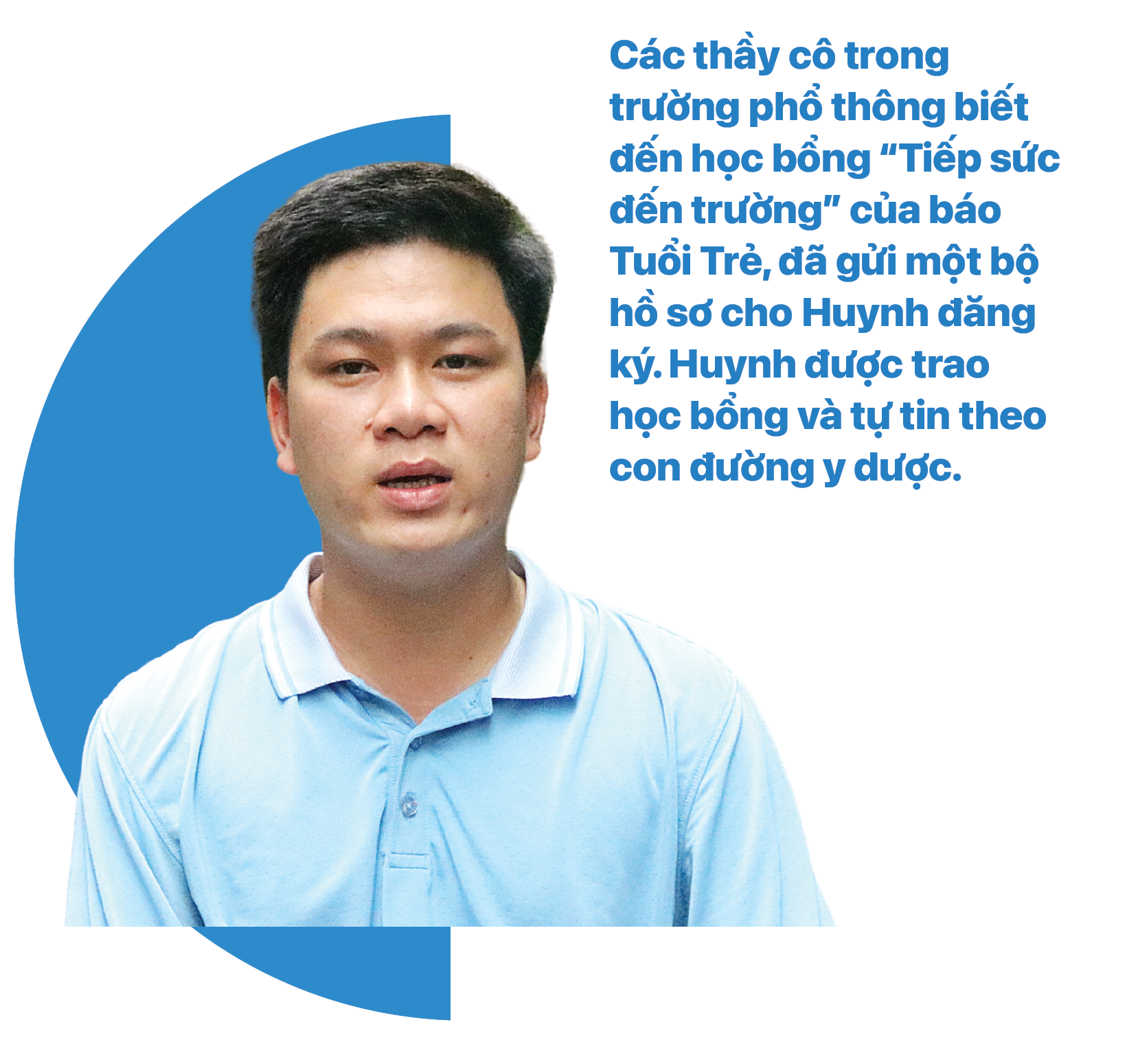 "Thấy tôi lo nghĩ, ba nhắn nhủ: Con muốn học y thì cứ học, ba nuôi. Tôi càng đắn đo. Phía sau tôi còn hai em nữa cũng đang tuổi ăn học. Tôi sợ rằng mình sẽ tạo thêm nhiều gánh nặng cho ba", Huynh nói.