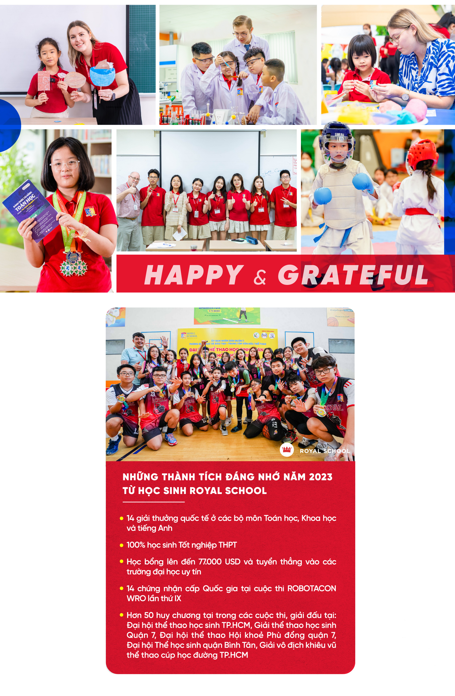Những công dân toàn cầu của Trường Song ngữ Quốc tế Hoàng Gia (Royal School) đang từng bước chứng minh sức mạnh từ sự đoàn kết, tinh thần độc lập, sẵn sàng học hỏi và chinh phục. Mỗi học sinh đều trưởng thành hơn mỗi ngày trong môi trường quốc tế, nơi bản thân được tôn trọng, được bày tỏ quan điểm, ý kiến và tạo điều kiện học tập tốt nhất.