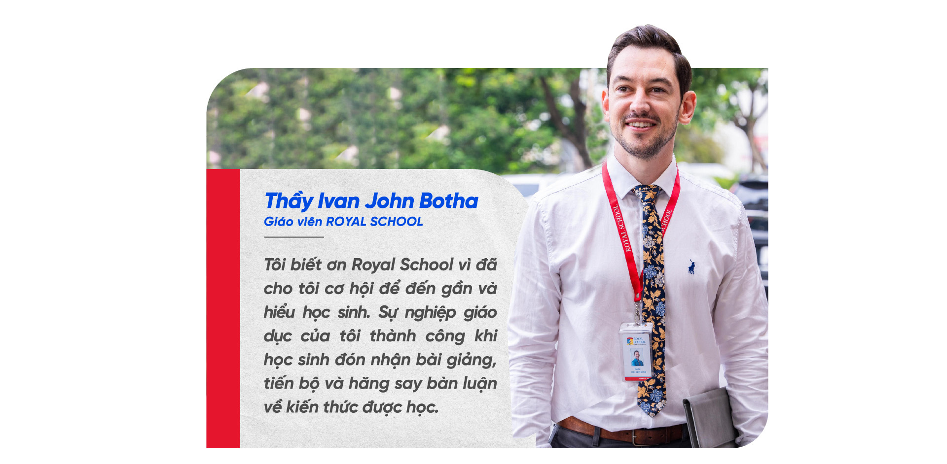 Thầy cho biết, học sinh Royal School luôn tự tin và sẵn sàng bày tỏ niềm yêu thích, hay mong muốn học tập trong môi trường cởi mở, liên tục cập nhật. Sự chủ động đó là đặc trưng của môi trường giáo dục quốc tế.