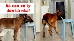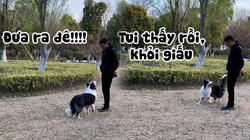 3 chú chó xếp hàng ngay ngắn để sen trách phạt vì nghịch bẩn