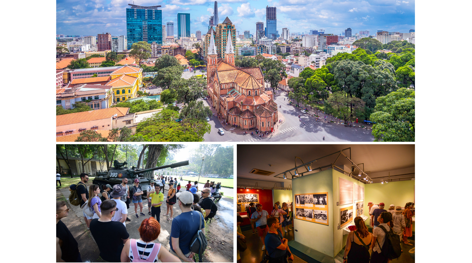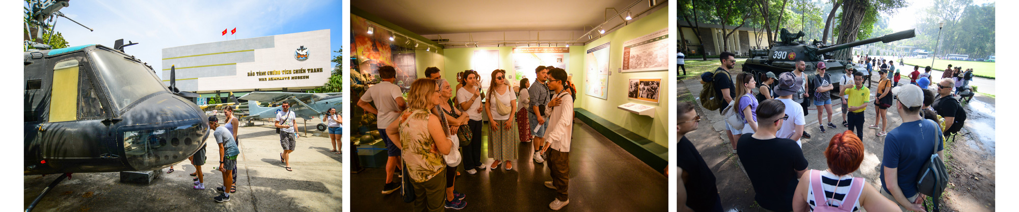 Những ngày tháng 4 luôn là thời điểm Bảo tàng Chứng tích chiến tranh và dinh Độc Lập được đón du khách nước ngoài đông nhất. Những câu chuyện chiến tranh và hòa bình được kể bằng chứng tích và hình ảnh nơi đây luôn mang lại những giá trị quý báu cho người nghe Ảnh: QUANG ĐỊNH