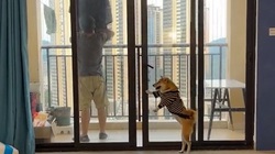 Chú chó Lu mặt hả hê vì được bà chủ bênh vực, thậm chí mắng xối xả các con vì không biết đường mở cửa khi Lu đi chơi về.