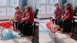 4 chú chó hoang mang khi thấy sen chặt dưa hấu vụng về
