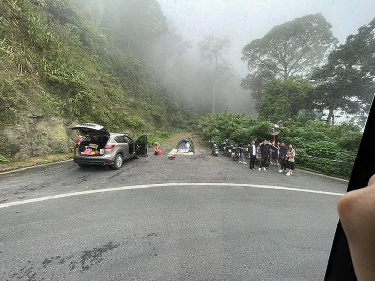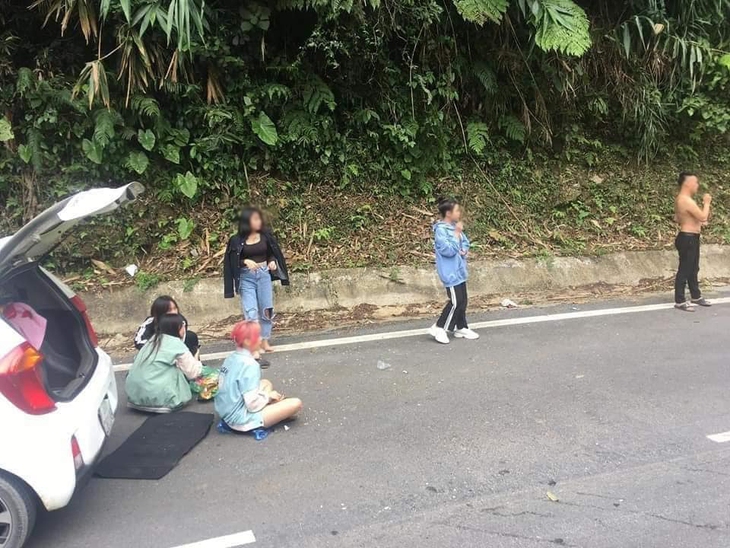 5 cô gái thản nhiên ngồi ăn uống sau đuôi ôtô dừng giữa đường đèo