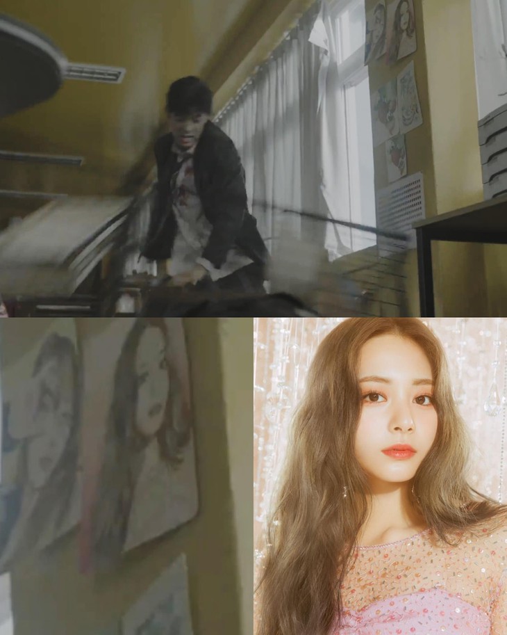 Trên tường một phòng học của All of us are dead có dán hình vẽ 2 idol nổi tiếng khác là Tzuyu (TWICE) và YooA (Oh my girl).