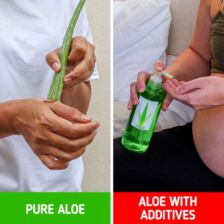 Đối với những ai đi nắng về và bị cháy nắng, nên thận trọng khi dùng các sản phẩm chăm sóc da gel lô hội. Một số thành phần nhân tạo, chẳng hạn như benzocain hoặc lidocain trong các sản phẩm này có thể làm trầm trọng thêm tình trạng kích ứng, và khiến da bạn ngứa hơn.