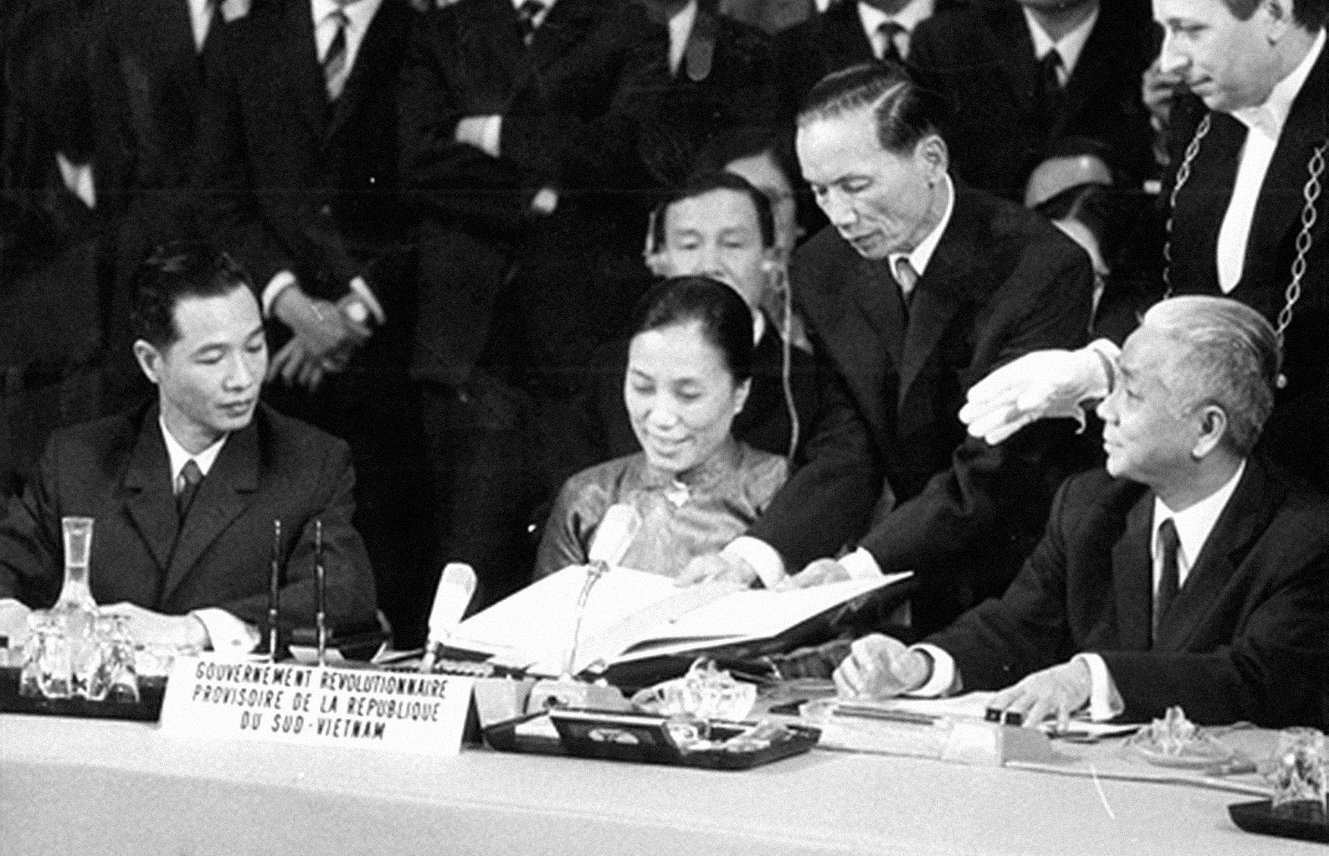 - Hiệp định Paris về Việt Nam được ký kết buổi sáng 27-1-1973. Không có họp báo, tôi trở thành "thất nghiệp", được cử đi gặp một lớp học sinh Mỹ ghé thăm Pháp. Nhìn những thiếu niên ấy, nghĩ rằng các em sẽ không bị đưa sang Việt Nam để giết người và có thể bỏ mạng, nghĩ tới những đồng bào chiến sĩ đã hy sinh và có thể còn sẽ phải hy sinh nữa trong những tháng năm tới, tôi không cầm được nước mắt.