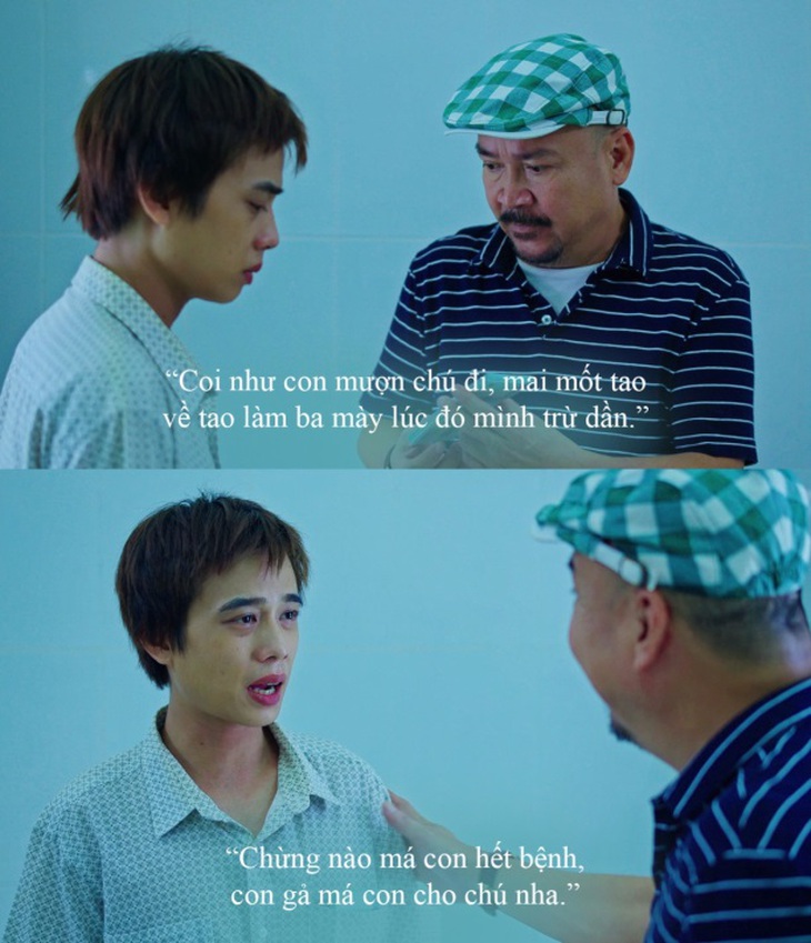 Trong phim, vai của nghệ sĩ Hồng Vân là bà mẹ đơn thân, phải vừa bươn chải kiếm tiền vừa kiểm soát đứa con trai đang tuổi ăn tuổi lớn nên bà có phần cộc cằn, hay dùng biện pháp mạnh với con.