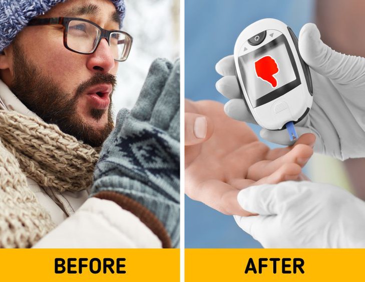 Thời tiết lạnh giá khiến cơ thể tiết ra các hormone căng thẳng làm tăng lượng đường trong máu. Hoạt động thể chất làm giảm lượng đường trong máu nhưng đối với nhiều người, khi nhiệt độ giảm xuống, lượng đường trong máu cũng tăng lên vì khi trời lạnh, chúng ta lười ra ngoài và tập thể dục hơn.
