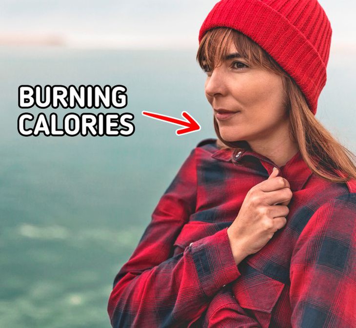 Khi cơ thể chúng ta thích nghi với nhiệt độ lạnh, chúng ta sản sinh ra nhiệt và đốt cháy thêm năng lượng. Khi chúng ta run rẩy để thích nghi với cái lạnh, chúng ta đang đốt cháy nhiều calo hơn để tạo ra nhiệt.