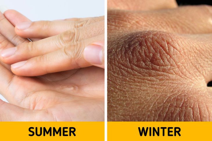 Làn da của chúng ta dễ bị tổn thương hơn trong mùa lạnh. Bởi vì độ ẩm trong không khí giảm trong những tháng lạnh, da bắt đầu khô và không thể giữ đủ nước. Kết quả là nó trở nên khô và dễ bị nhăn hơn.