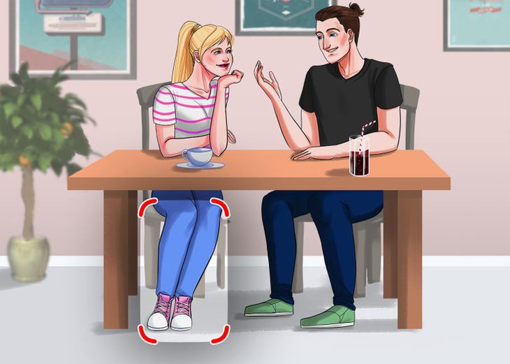 Nếu chú ý kỹ, chân của họ xoay hướng khác, không hướng thẳng về phía bạn, đây là "sự từ chối bằng bụng". Hay theo cách nói thông thường, tôi khó chịu quá rồi đấy. Đổi chủ đề hoặc "next!".