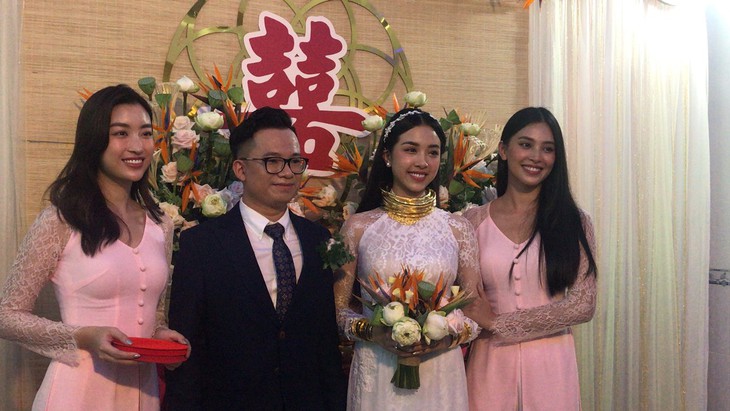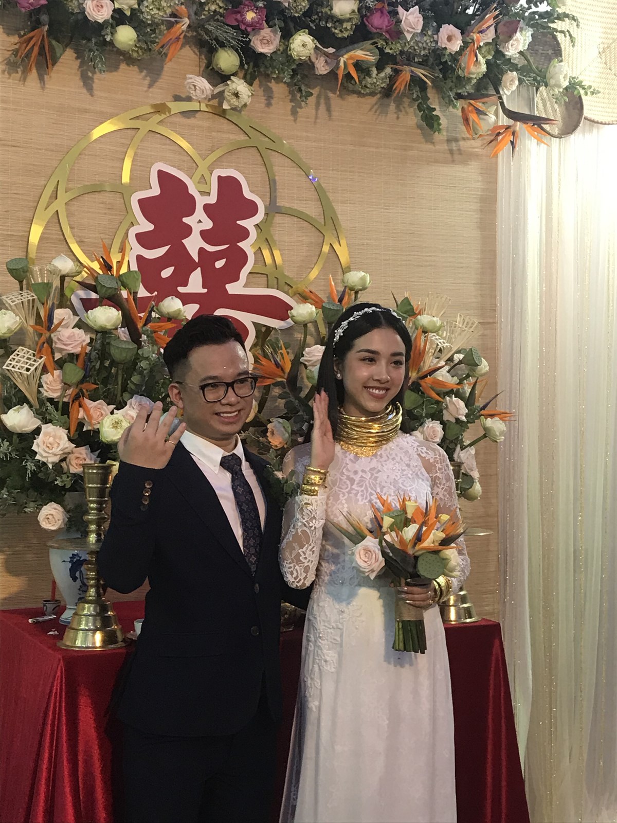Á hậu Thúy An bất ngờ lên xe hoa, đeo vàng nặng trĩu cổ