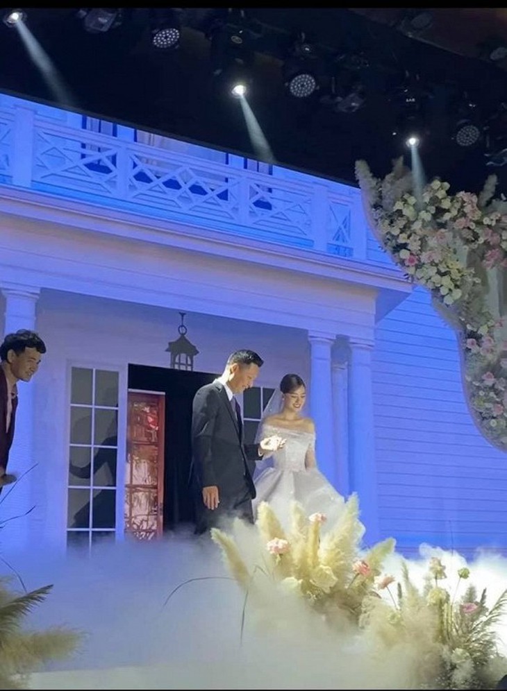 Ông xã á hậu Tường San tên Đức AnhTiệc cưới được tổ chức vô cùng long trọng tại một khách sạn 5 sao ở Hà Nội với số lượng khách mời hạn chế để đảm bảo không gian và sự riêng tư cho đôi uyên ương. Những hình ảnh mới nhất được hé lộ, cặp đôi chọn tông màu trắng cũng như hoa tươi để giúp cho không gian tiệc thêm sang trọng.