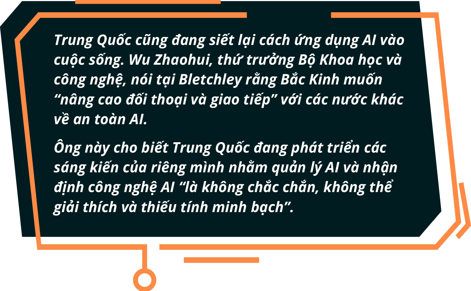 Trở lại AI Safety Summit, sở dĩ nó được tổ chức tại tòa nhà Bletchley - cách London chừng 80km về phía bắc - là bởi đây là nơi một nhóm các nhà khoa học do Alan Turing dẫn đầu đã làm ra chiếc máy tính đầu tiên, giúp giải mã các bức điện của Đức quốc xã trong Đệ nhị thế chiến. Tổ chức hội nghị ở đây, nước Anh muốn trở thành một trung tâm sáng kiến của thế giới, lần này là giải mã và chế ngự AI.