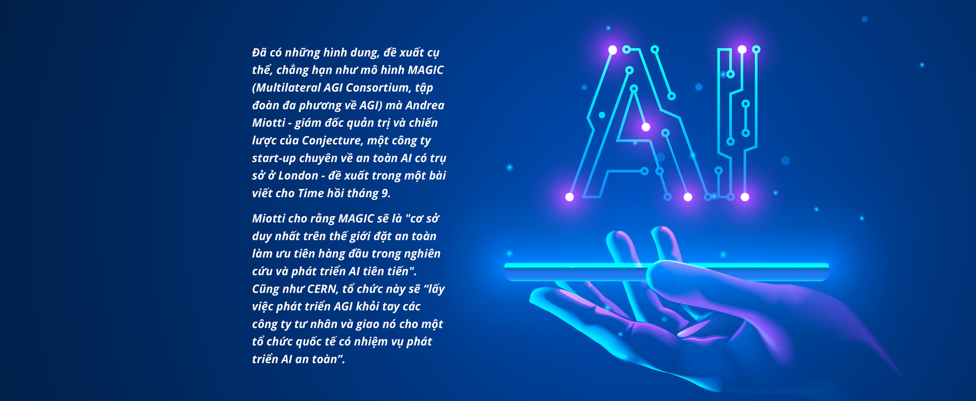 Nếu nhân loại đang cần một CERN hay IAEA cho AI, mà đúng hơn là AGI (trí tuệ tổng hợp nhân tạo, AI cao cấp với khả năng nhận thức như của con người) thì các cơ quan đó sẽ thế nào?
