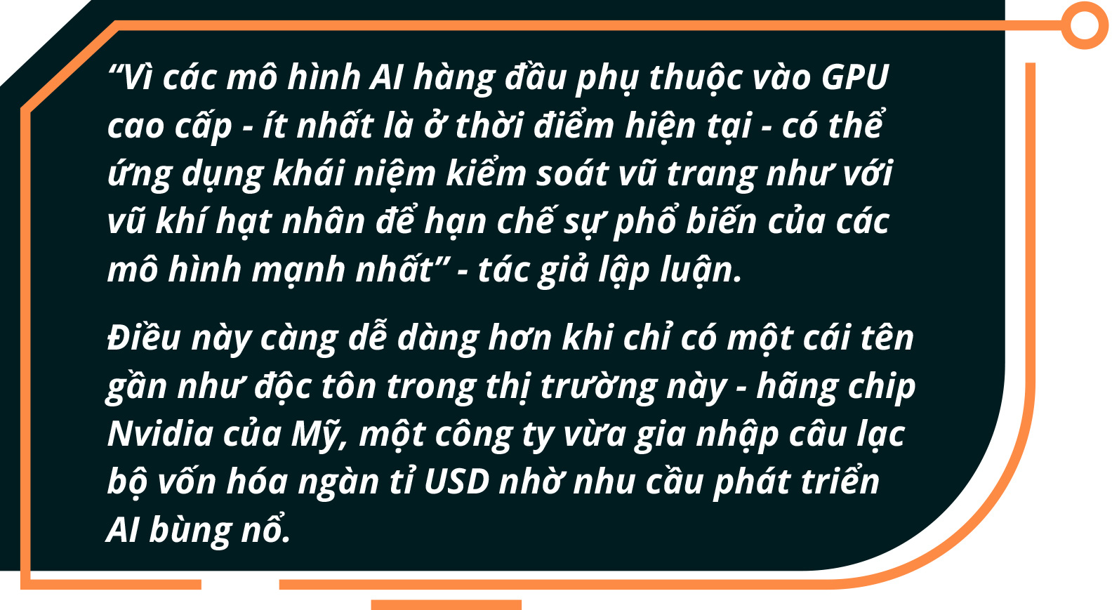 Trong khi phần dữ liệu và thuật toán hầu như không thể can thiệp, chân kiềng còn lại, cụ thể là các chip xử lý đồ họa (GPU) siêu mạnh, dễ kiểm soát hơn.