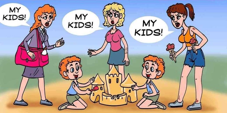 Trong thử thách đố mẹo này, bạn sẽ được xem một hình ảnh trong đó có ba người phụ nữ đang tranh giành hai đứa bé.