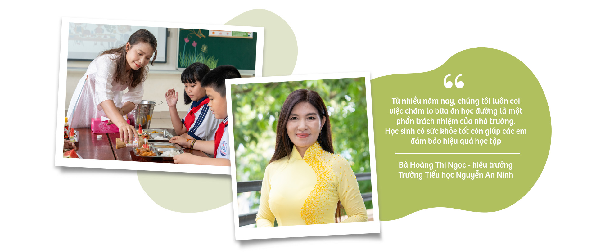 "Từ nhiều năm nay, chúng tôi luôn coi việc chăm lo bữa ăn học đường là một phần trách nhiệm của nhà trường", bà Ngọc chia sẻ. "Học sinh có sức khỏe tốt còn giúp các em đảm bảo hiệu quả học tập".