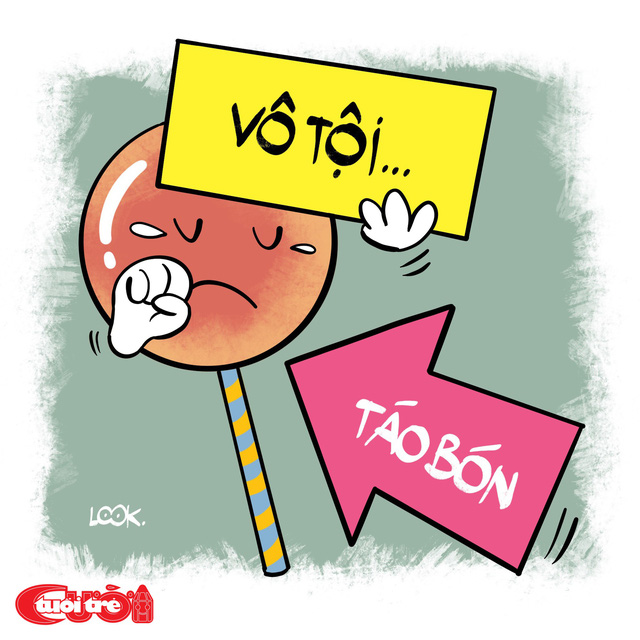 Táo bón ở trẻ, ngoài chế độ ăn (ví dụ thiếu chất xơ) còn thêm vài hậu thuẫn như uống ít nước, nhịn đi ị. Trong danh sách đen, đồ ngọt có vẻ ít liên can, nếu cần cho trẻ uống đủ nước là ổn. Tất nhiên, đồ ngọt chỉ ngoại phạm khoản táo bón, còn những tội khác như làm béo phì, sâu răng, ăn vặt bỏ bữa thì rành rành không chối cãi!
