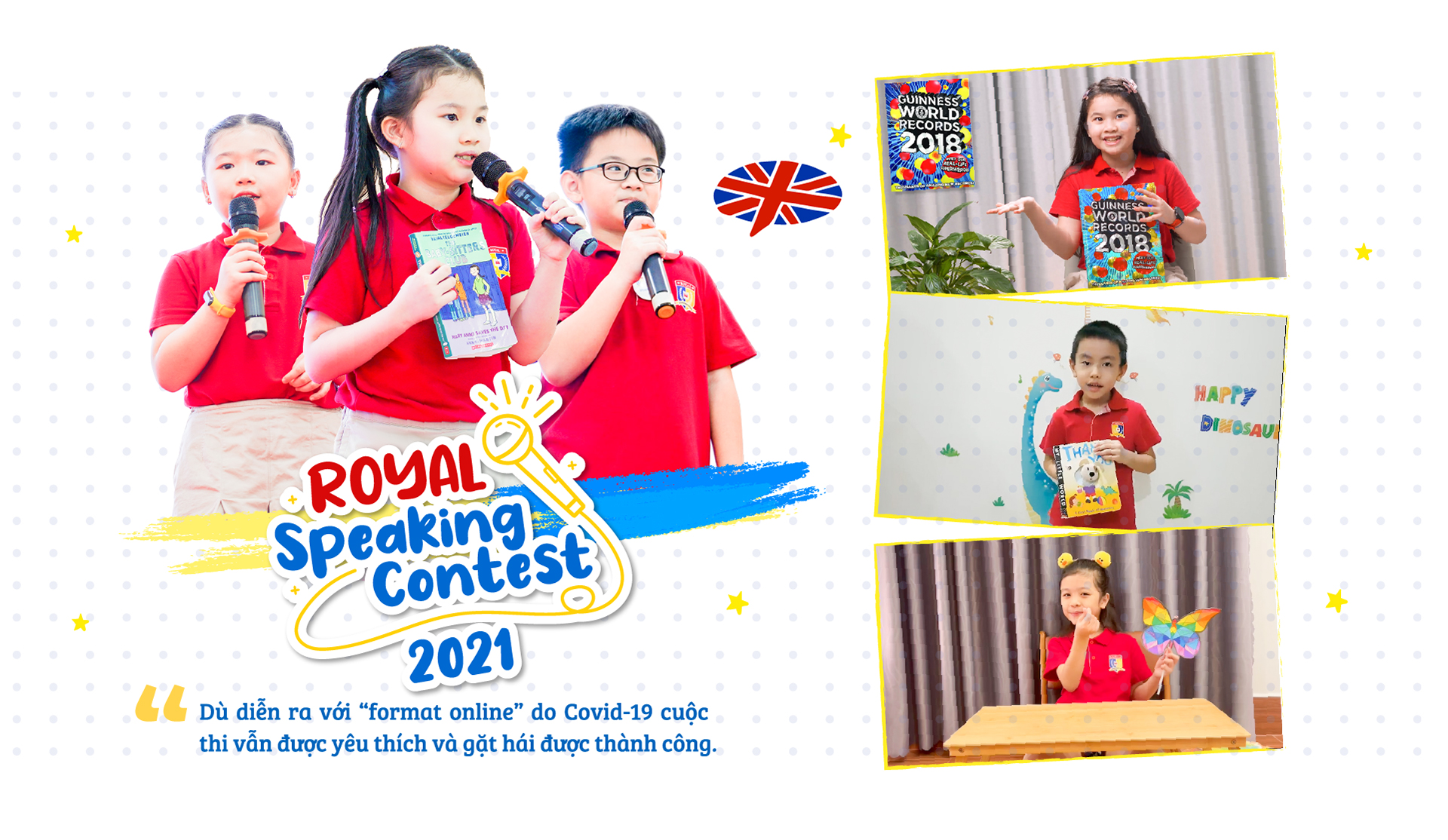 Cuộc thi năm nay được tổ chức theo hai hình thức: Kể chuyện tiếng Anh (Tiểu học) và Hùng biện tiếng Anh theo chủ đề (Trung học). Thông qua các video ngắn kể về một câu chuyện yêu thích hoặc trải nghiệm của bản thân, các em học sinh của trường đã tích cực hưởng ứng và gửi bài dự thi.