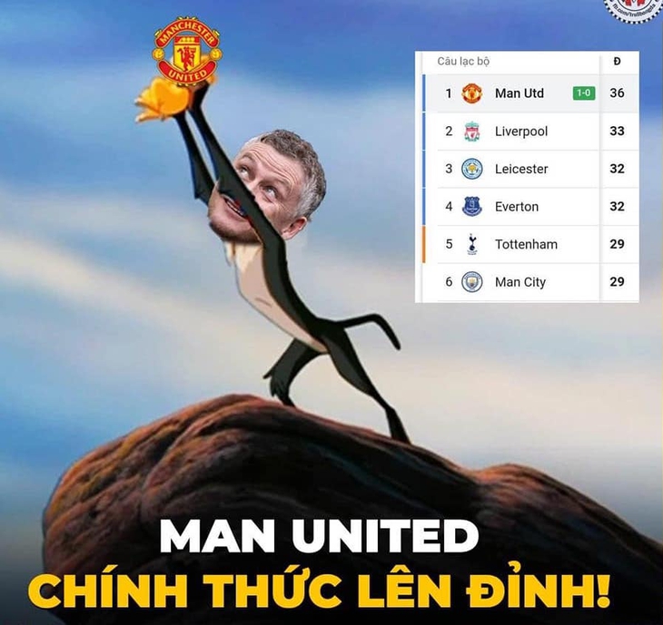 Ảnh chế Manchester United đứng đầu Ngoại hạng Anh: Ò ó o
