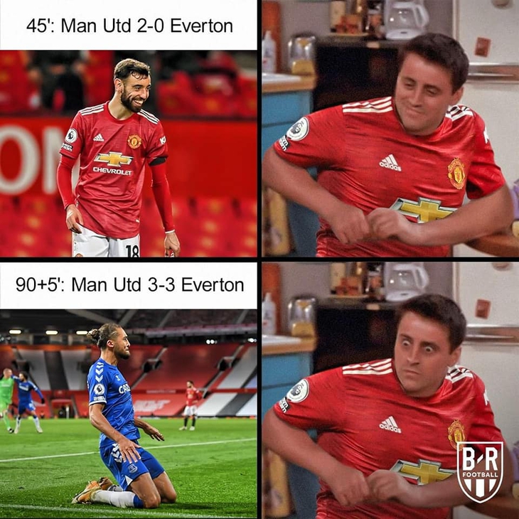 Dẫn Everton 2-0 từ sớm trong một thế trận tấn công như vũ bão. Nhưng đến cuối cùng, những gì các cổ động viên Manchester United nhận được chỉ là sự tiếc nuối. Ảnh: B/R.