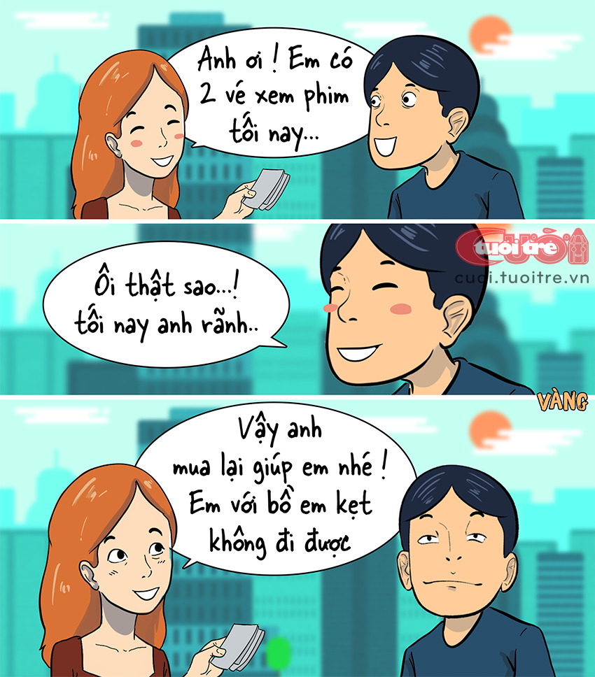Anh ơi, em có 2 vé xem phim tối thứ bảy
