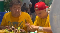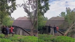 Anh Tây lên thuyền thúng không đúng cách bị ngã nhào xuống sông làm mọi người xung quanh phì cười.