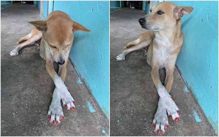 Chú chó được sen làm cho bộ nails đón Tết.Vui lòng nhập Tên hiển thị