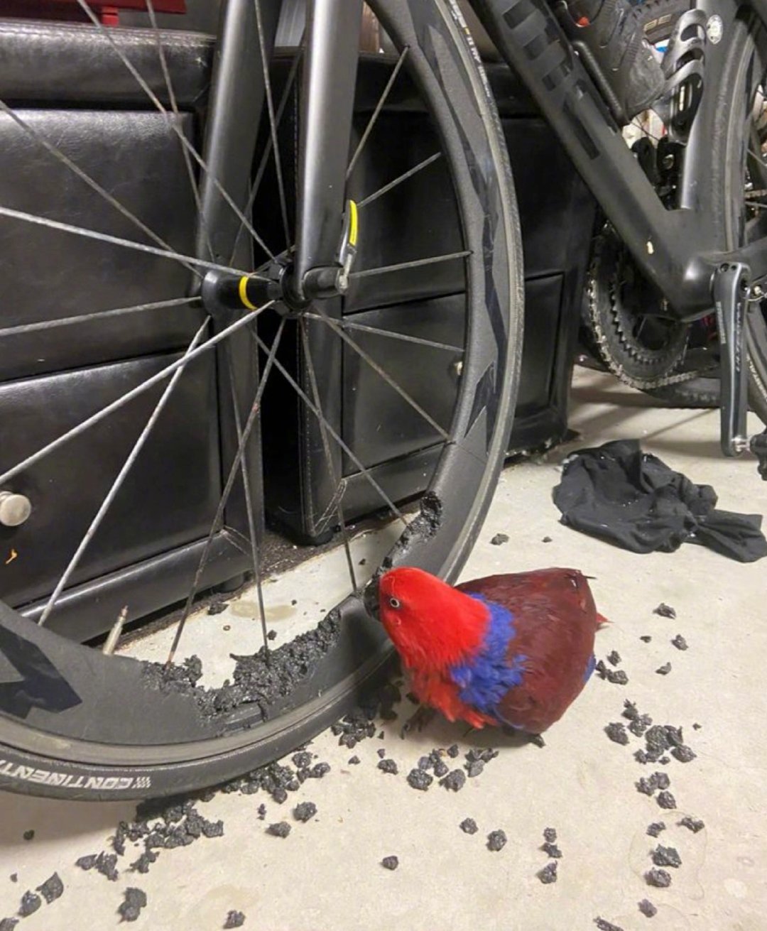Ảnh vui 27/11: Chú vẹt cắn nát bánh xe đạp cho đỡ 'ngứa mỏ'