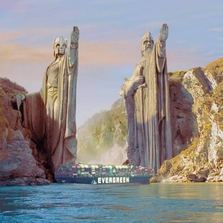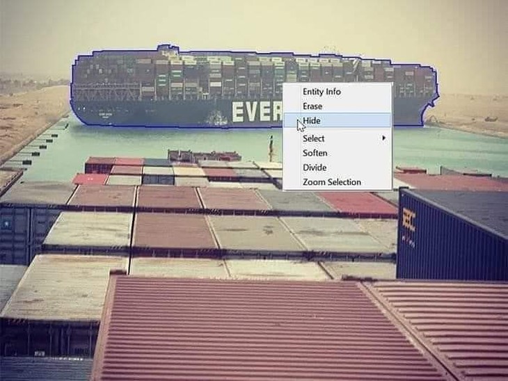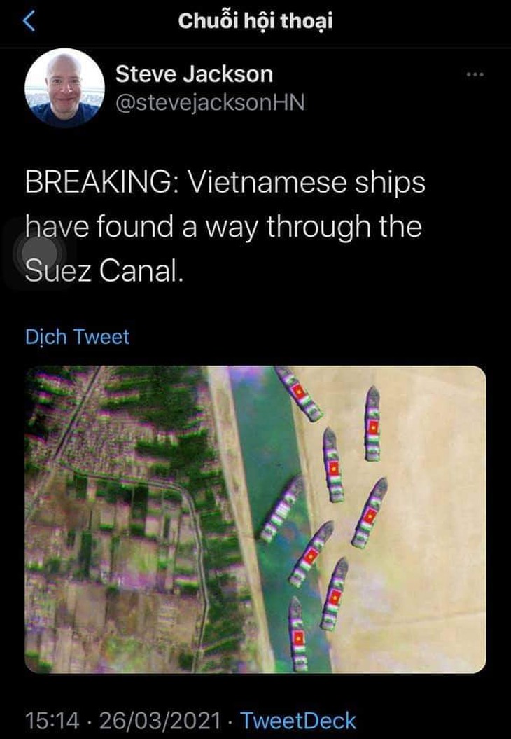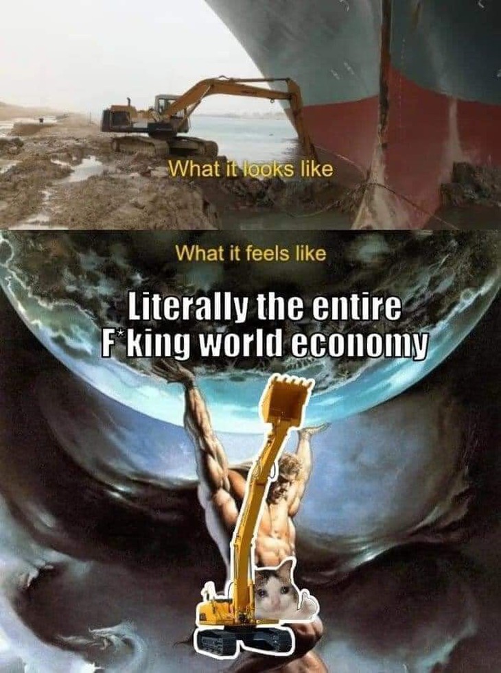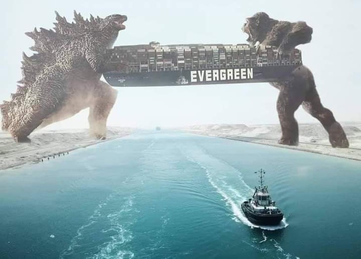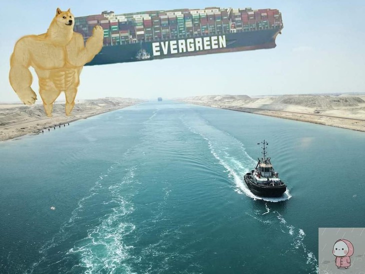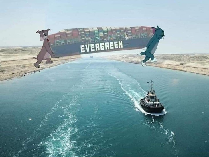 Và lúc này, những hình ảnh meme trên toàn cầu đã bắt đầu biến một câu chuyện bi hoá hài chỉ trong tích tắc khi giây phút chiếc máy xúc đất lọt vào ống kính trước mũi tài Ever Given.