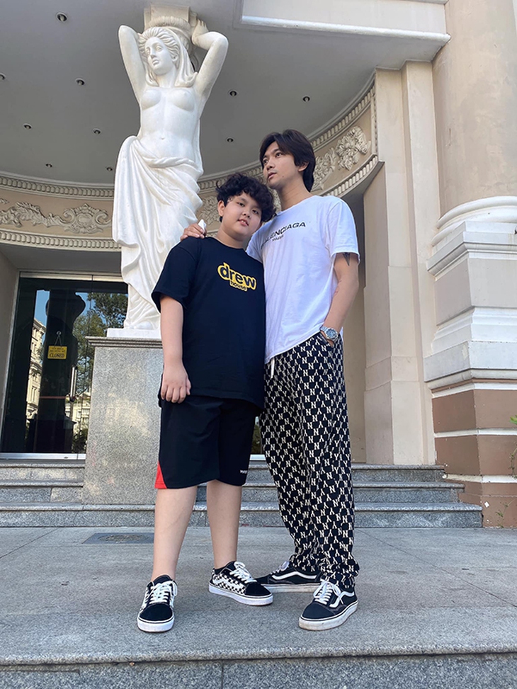 Gia đình diễn viên Bình Minh tranh thủ pose hình khi đi ăn tối tại một nhà hàng sang trọng ở TP HCM.