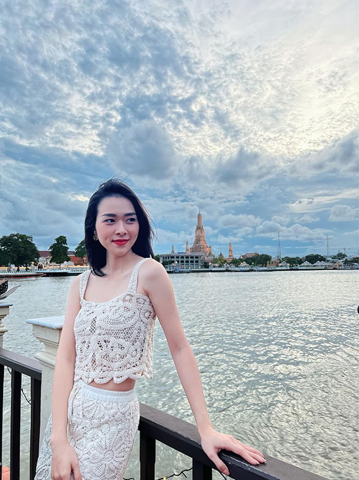Ngô Thanh Vân tự tin diện áo crop top khoe eo thon. Cô được khen trẻ ra vài tuổi kể từ sau khi kết hôn với ông xã Huy Trần.