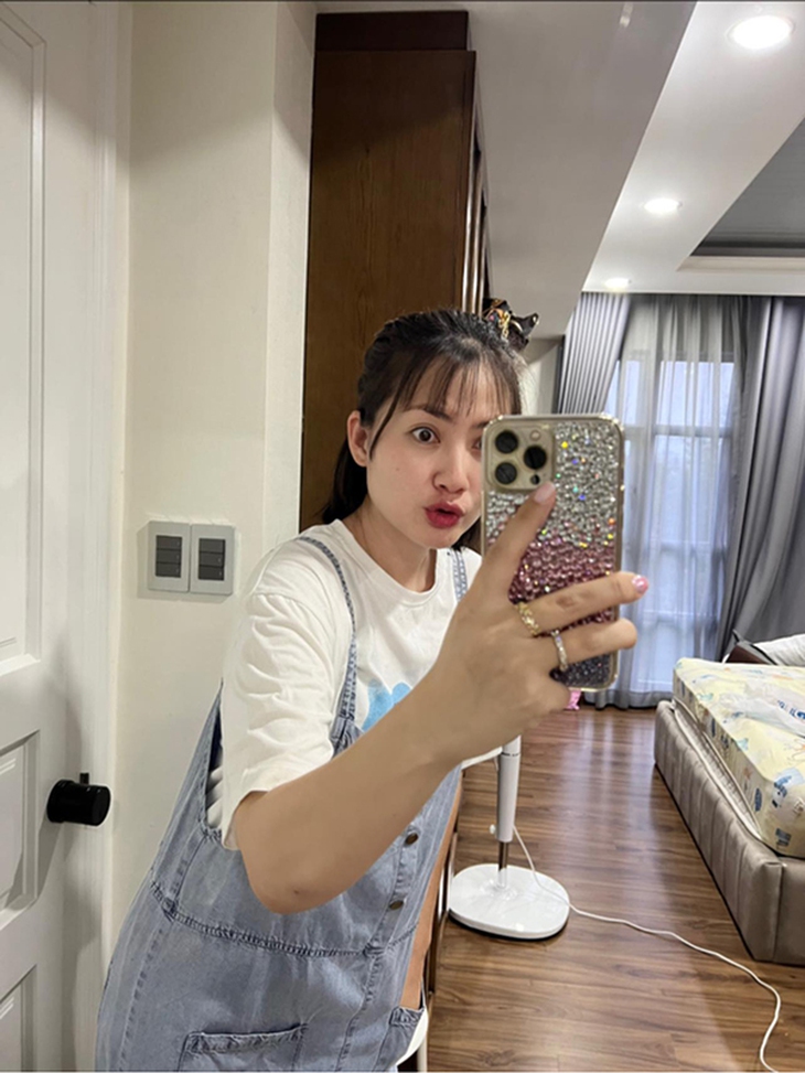 Nhã Phương (trái) đăng hình đọ bụng bầu thay lời chúc mừng sinh nhật đến Thúy Ngân khiến nữ diễn viên ngỡ ngàng.