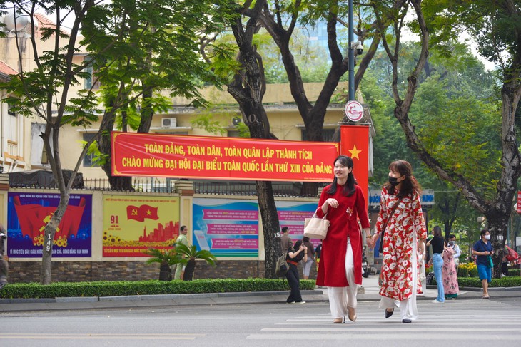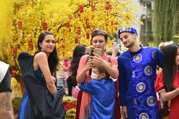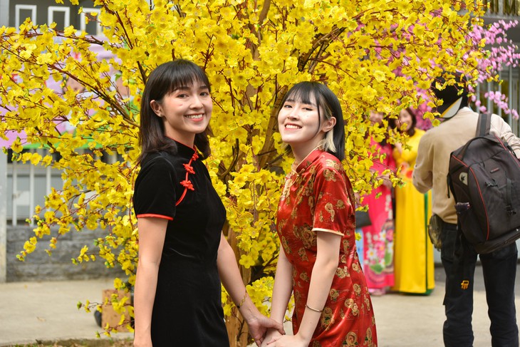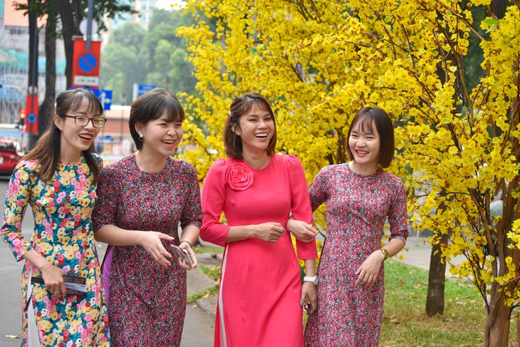 Áo dài hoa xuống phố Sài Gòn trước thềm Tết Tân Sửu