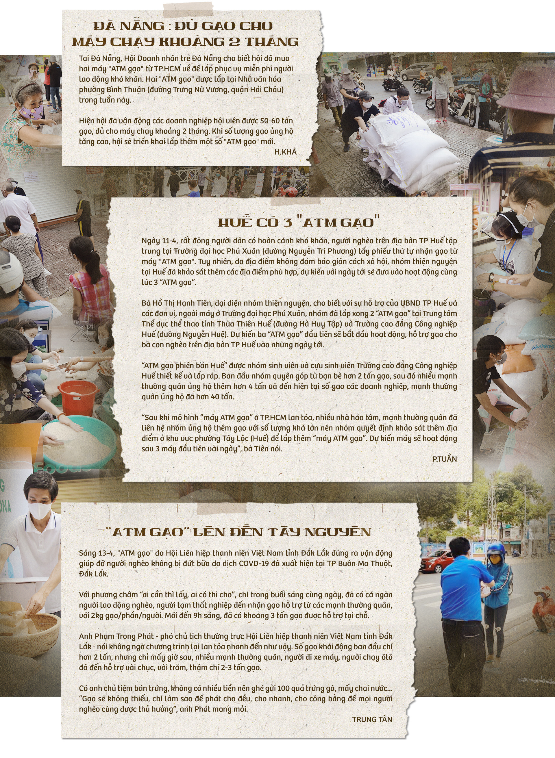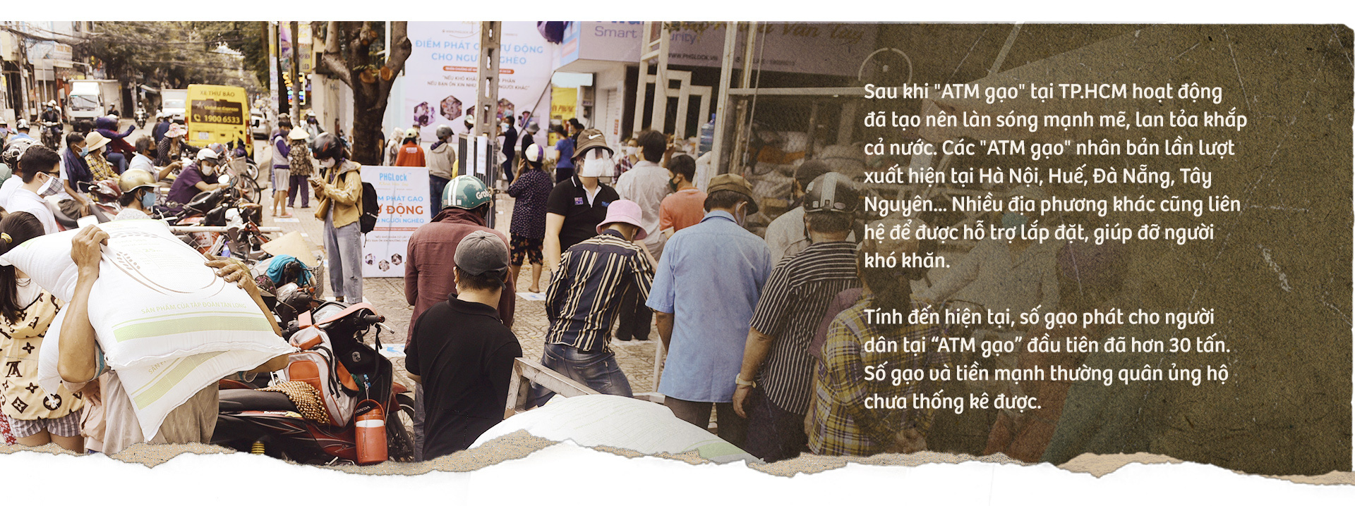 - Giờ tôi không lo thiếu gạo nữa mà lo làm sao để những ATM gạo 2, 3, 4, 5 hoạt động tốt, an ninh về trật tự, an toàn về y tế, bởi chỉ cần có một sự cố xảy ra thôi, tất cả sẽ phải dừng lại.