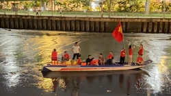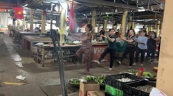 Bà con tiểu thương Nghệ An cầm cờ diễu hành quanh chợ mừng lễ 30-4