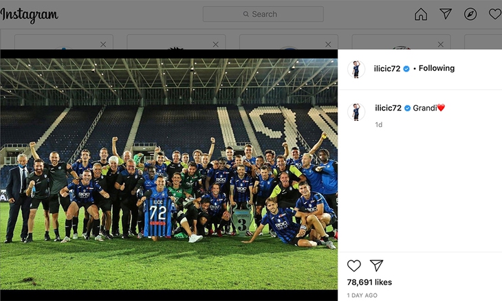 Sau thời gian dài biến mất, ngày 2-8 Ilicic vừa đăng lên Story của Instagram hình ảnh hạnh phúc với vợ Tina.Trong ngày 3-8, Ilicic - sau thời gian biến mất khỏi công chúng - đã xuất hiện trên Instagram, đăng tấm ảnh cả đội Atalanta, trong đó các đồng đội cầm áo số 72 của anh ăn mừng ngôi vị thứ 3 tại Serie A, kèm dòng chữ "Tuyệt vời!".