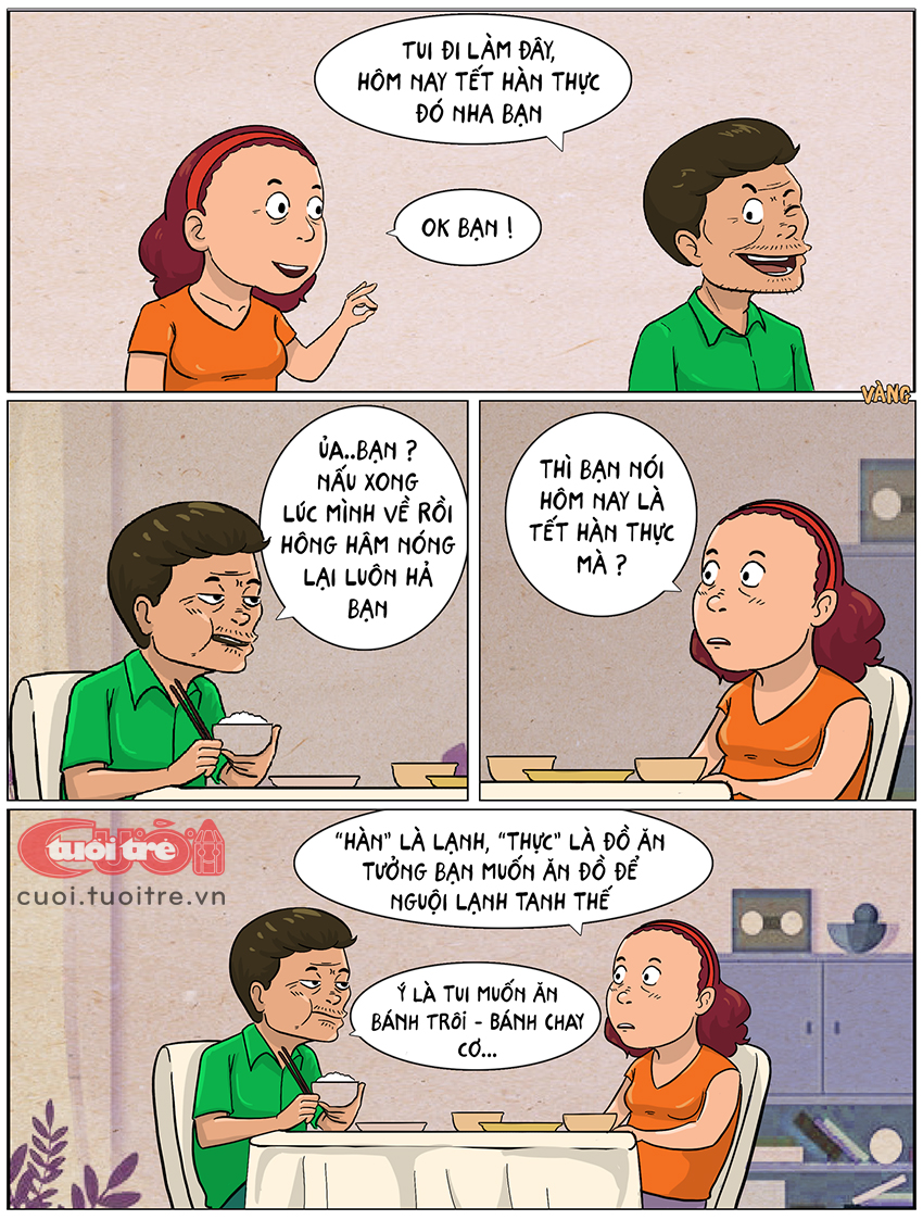 Bà vợ cho chồng ăn đồ nguội nhân ngày Tết Hàn Thực