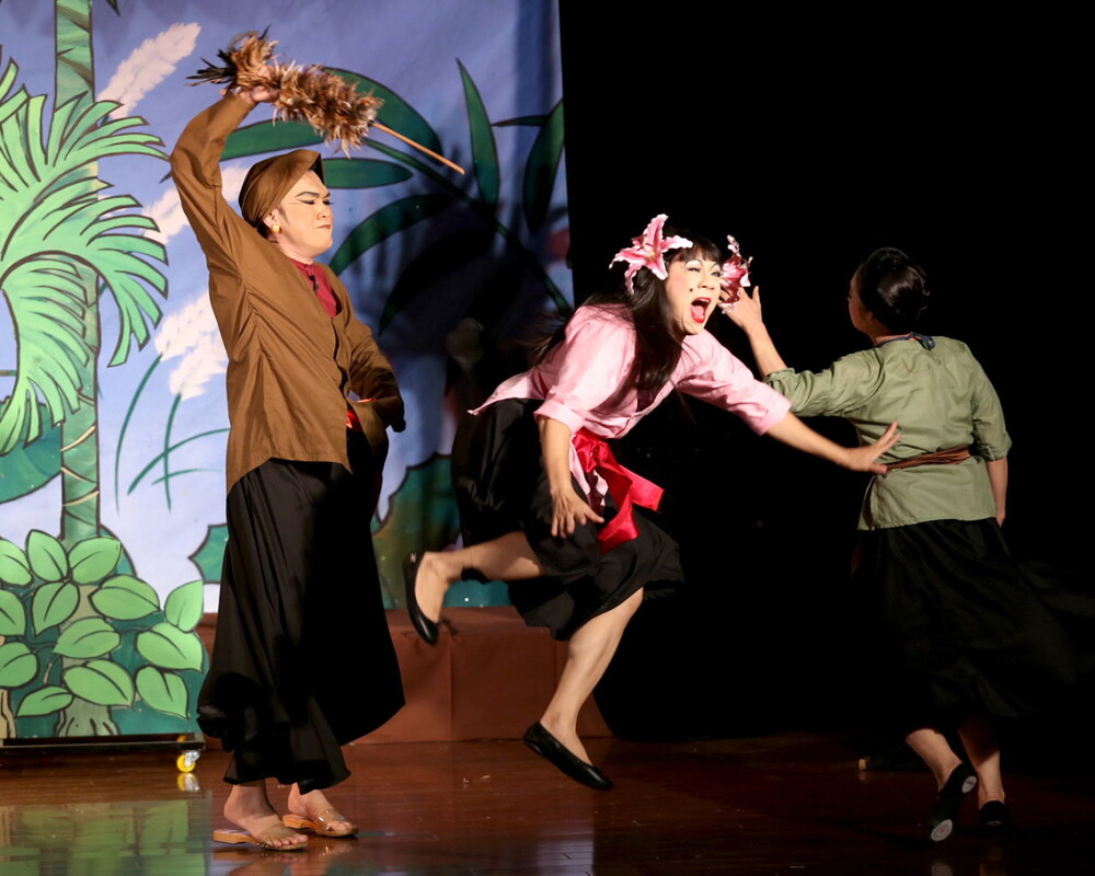 Con bò cạp đen nhẻm gây ấn tượng mạnh vì nói cái gì không ai hiểu và phải được phiên dịch qua bò cạp diêm dúa. Xuyên suốt cả vở kịch, khán giả được cười nghiêng ngả với những lần chạy xe đạp nhưng nẹt pô xe máy của bọ cạp câm cùng những màn múa hát bất tận.