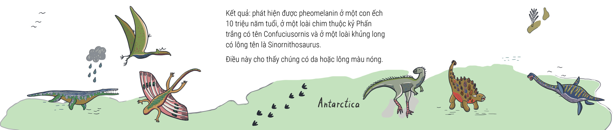 Thế giới động vật tiền sử chắc chắn cũng phải đầy sắc màu như hiện nay, bởi sinh vật thời nào thì cũng cần có "ngoại hình" phù hợp để giao tiếp, ngụy trang, thậm chí điều chỉnh nhiệt độ cơ thể.