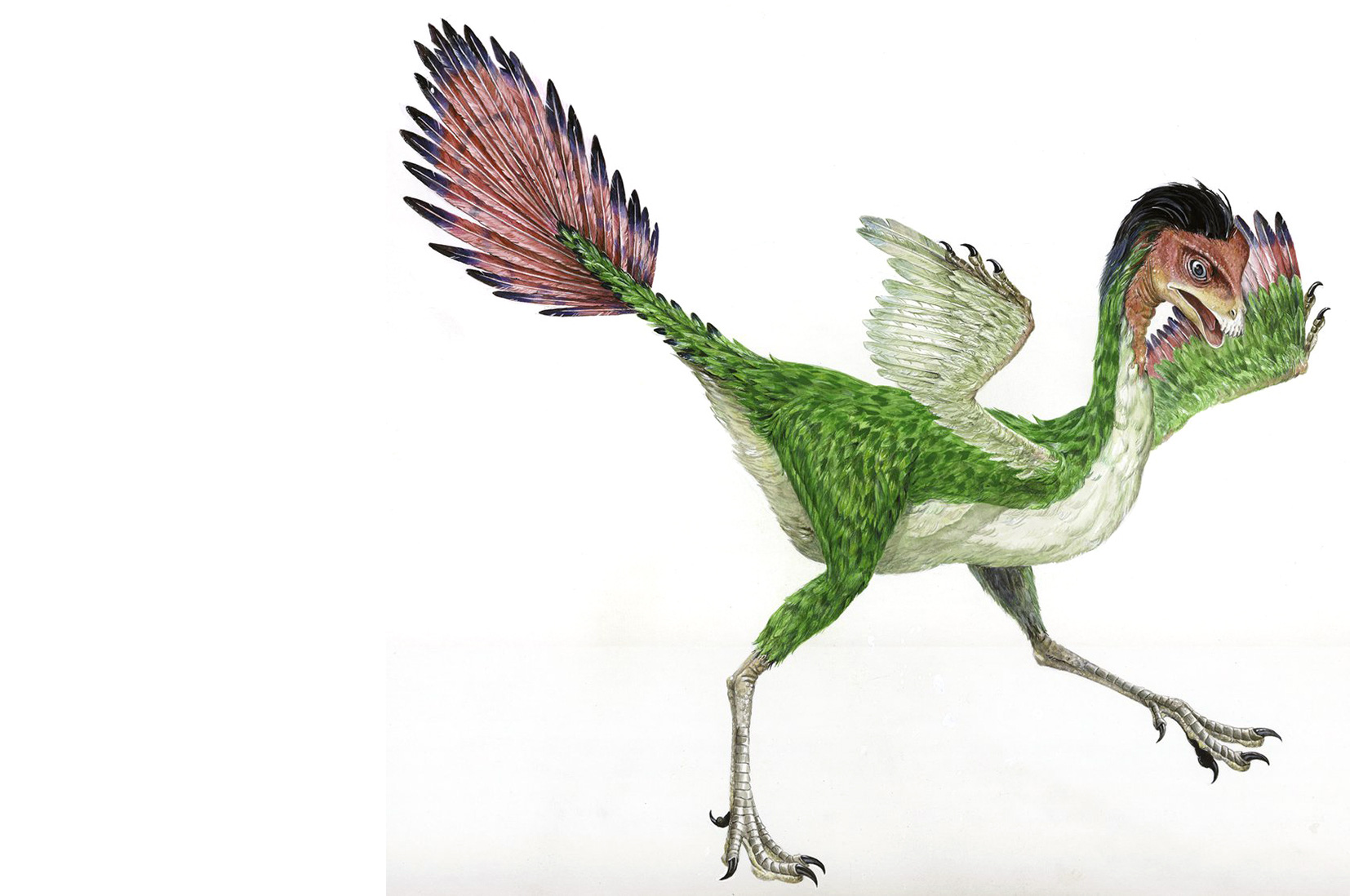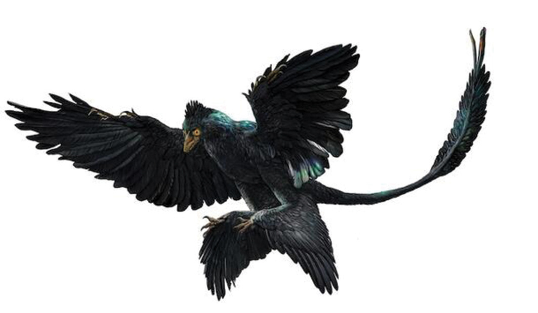 Một nhóm nghiên cứu khác khẳng định Anchiornis - một loài khủng long bốn cánh có họ hàng gần với loài chim - có lông màu đen và trắng với mào đỏ và các đốm trên mặt.