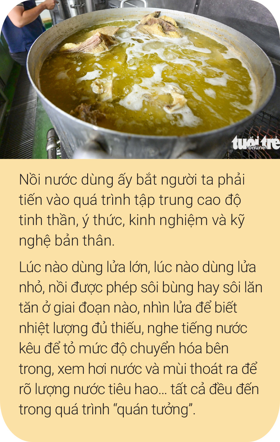 Và đấy không phải là việc đặt một nồi xương lên bếp ninh ở nhiệt độ cố định trong thời gian năm hay tám tiếng, để đó rồi bỏ đi làm việc khác là được.