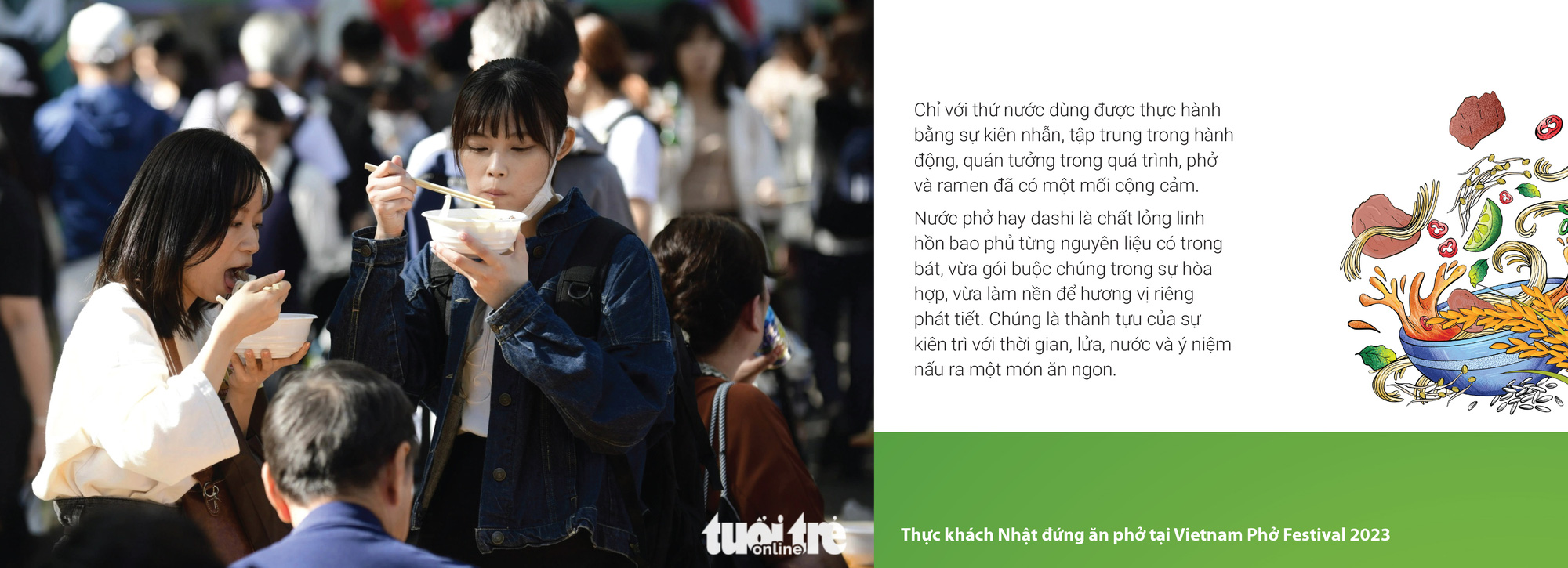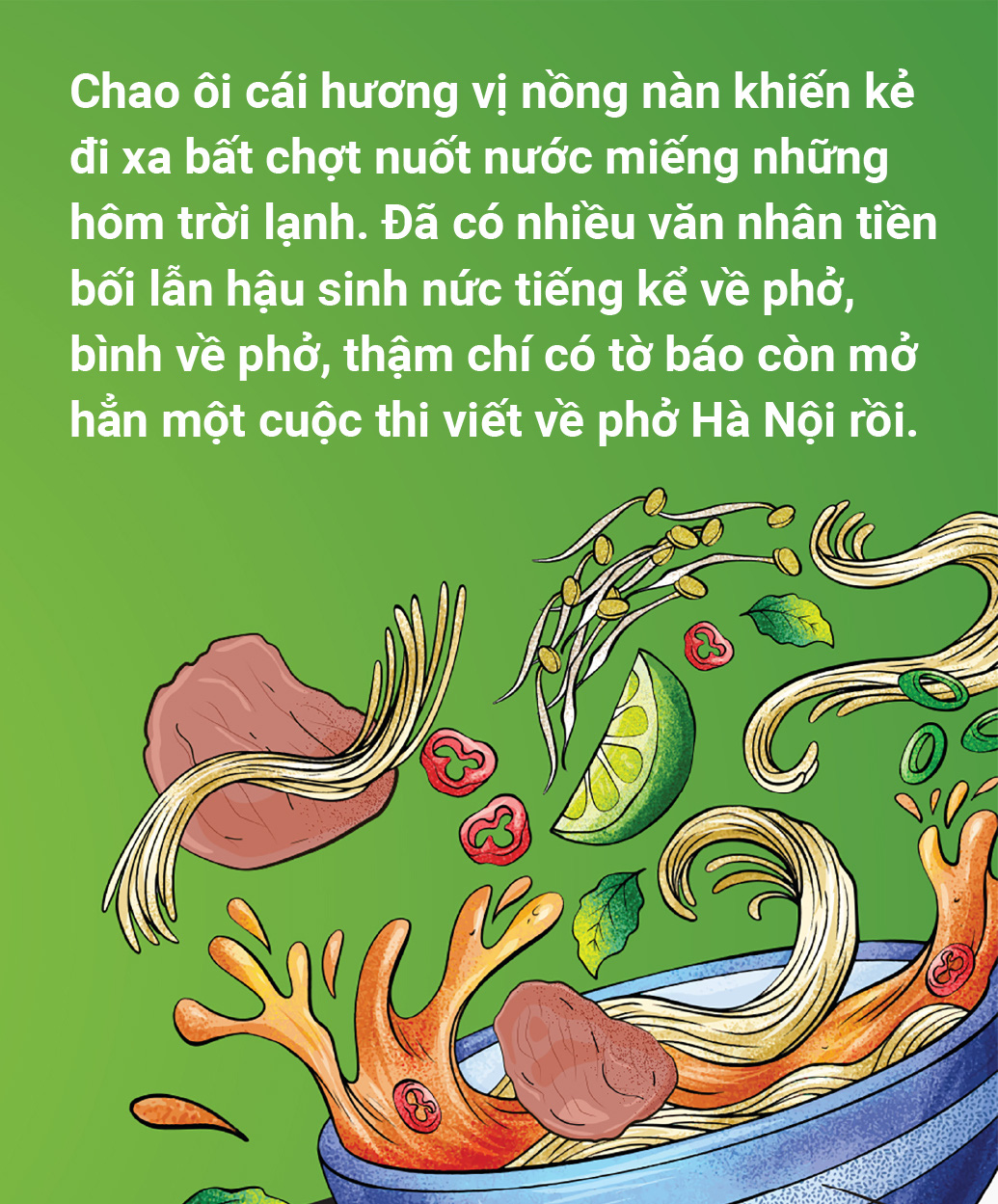 Bài viết này coi như góp thêm một góc nhìn riêng về một thức quà thơm từ nồi nước dùng đang sôi ngây ngất sớm mai trên phố, thơm vào cả những trang sách tụng ca.