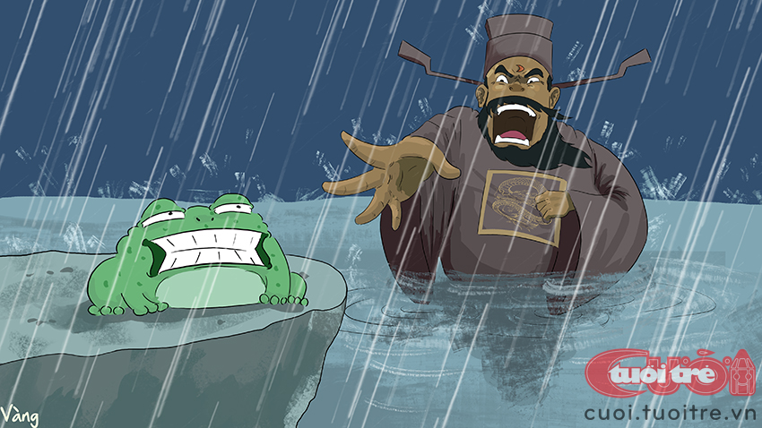 - Cóc tại sao ngươi gây ra cơn mưa cực đoan để đường xá ngập mút mùa lệ thủy, minh vương vậy? Bộ tưởng ngươi là cậu ông Trời thì muốn làm gì thì làm sao?